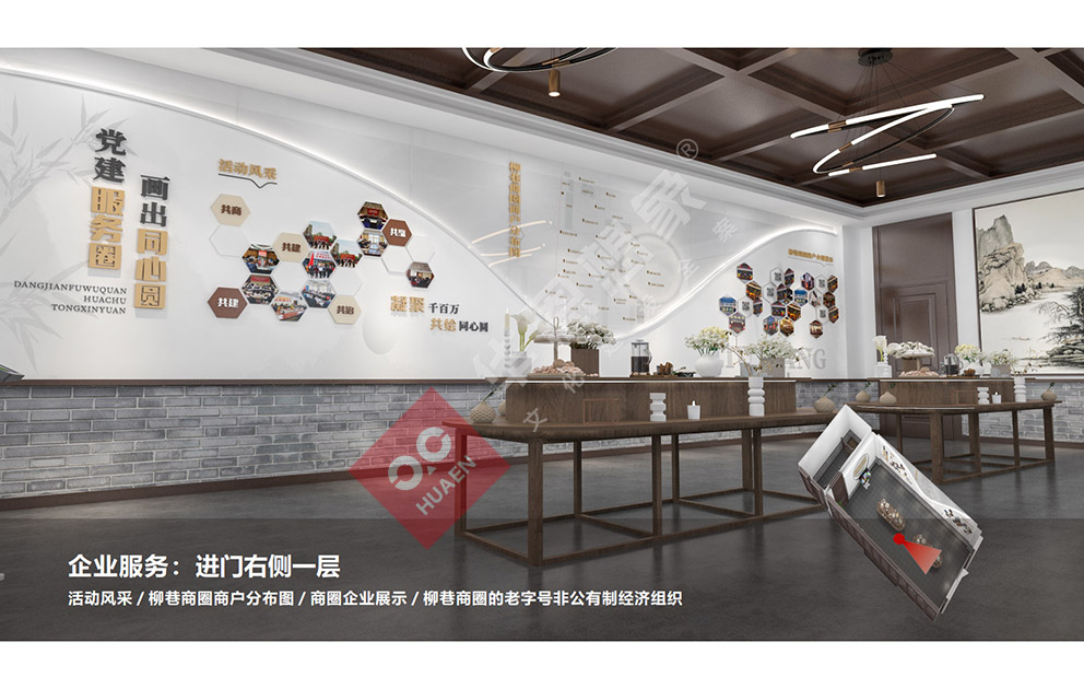 設(shè)計理念:太原市迎澤區(qū)柳巷商圈黨群服務(wù)中心秉承整體主題大把控,細節(jié)小處做文章。我們力圖充分運用現(xiàn)代設(shè)計語言, 強調(diào)人文展示特點,通過采用圖文展板展柜,集合弧幕投影等多媒體手段,圍合出一個個相對獨立的專題空間。打造一個具有想象力的、精致的、高品位的主題展覽館。打造集黨建展示、組織生活、政務(wù)服務(wù)、實境體驗 等為- -體的“有溫度、聚人氣”的商圈黨群服務(wù)中心。