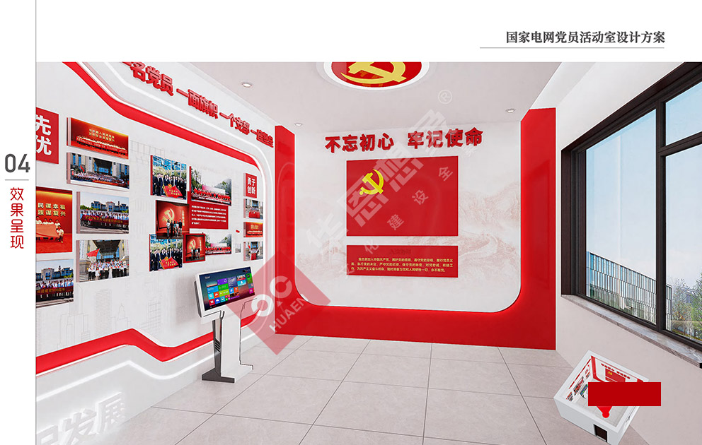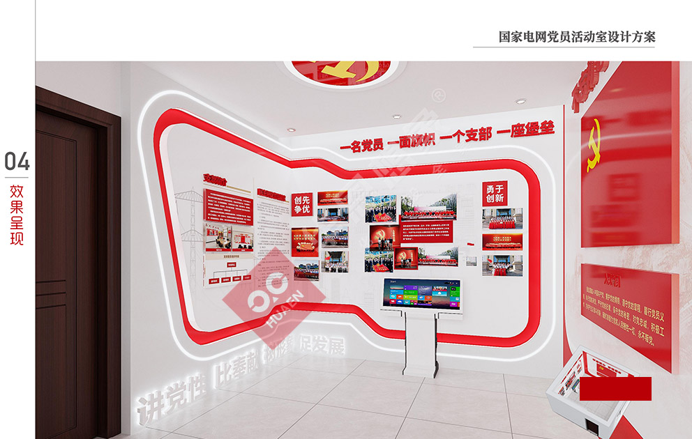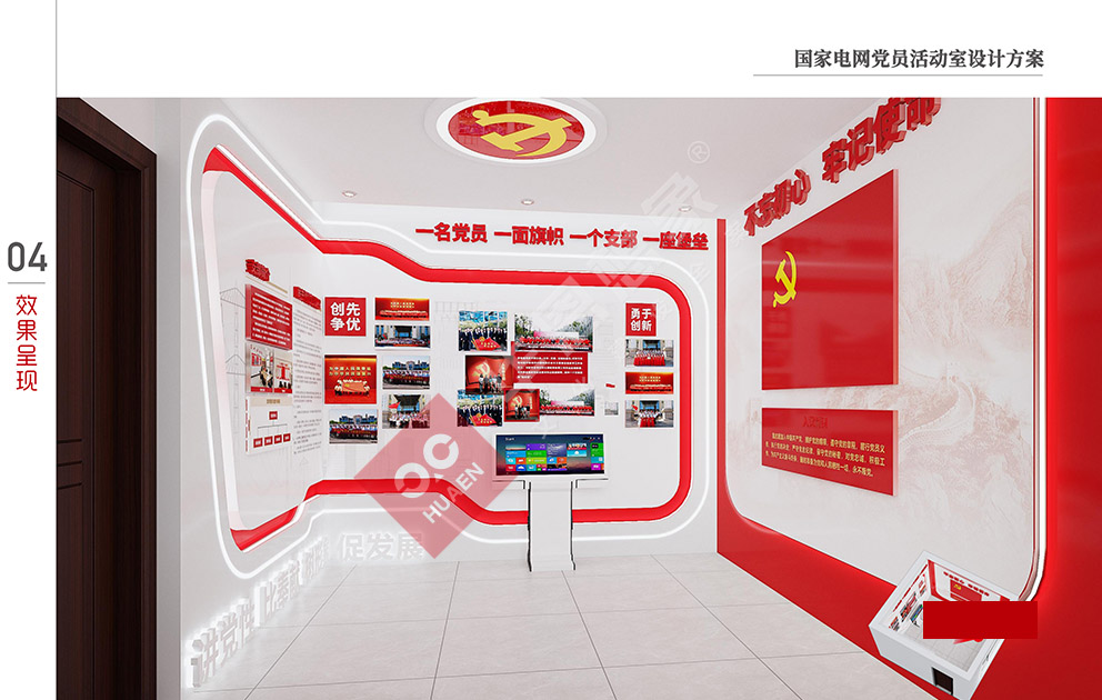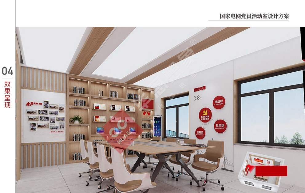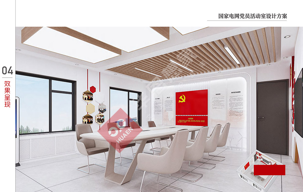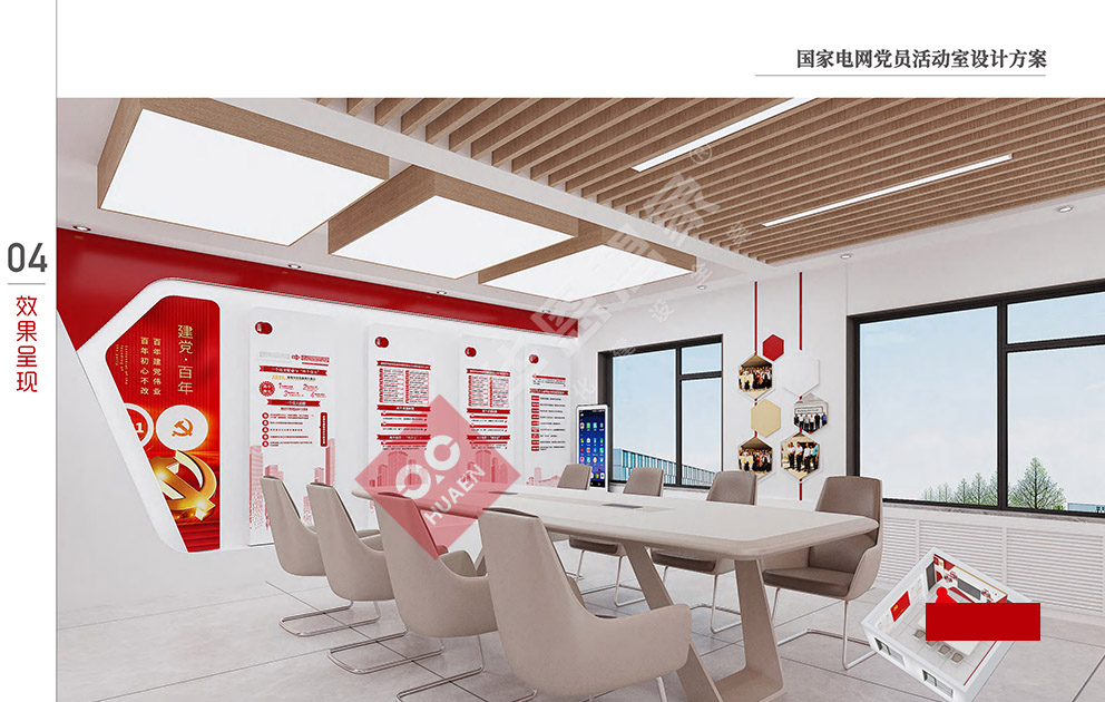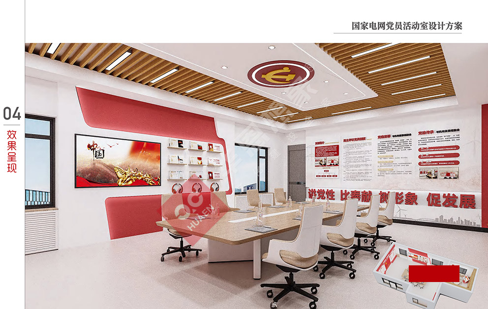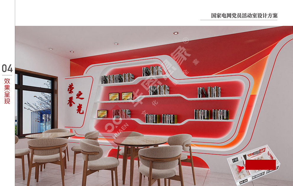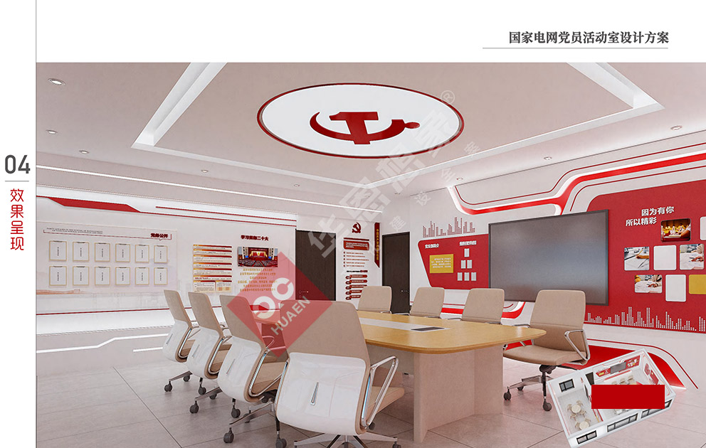 設(shè)計理念:黨員活動室的建立,不僅是黨支部開展活動的主要陣地,更是黨支部團結(jié)職工群眾、加強思想政治建設(shè)的主要場所。黨員活動室要按照布局合理、美觀整潔、特色鮮明、氛圍濃厚的要求進行布置??臻g圍繞開會學習加入黨建文化。主要設(shè)計有宣誓文化墻和黨的二十大文化墻; 宣誓文化墻讓廣大黨員增強黨員意識、爭做合格黨員的基礎(chǔ)。黨的二十大文化墻重溫黨的光輝歷程,學習新時代精神,從我們黨的光輝歷程和偉大成就中弘揚偉大的建黨精神。