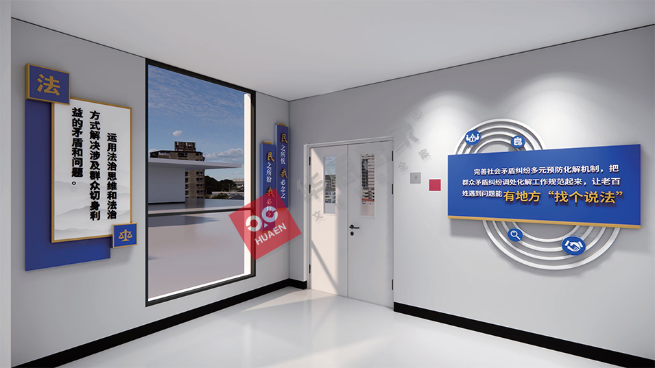 服務項目:樓宇目視化設計、綜治中心大廳空間文化建設、綜治中心樓道文化建設